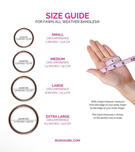 BuDhaGirl Fawn All Weather Bangles® (AWB®), are the epitome of luxury in BuDhaGirl's impressive lifestyle collection, boasting an elegant selection of browns. Our remarkable bangles redefine elegance with their weightless, soundless, waterproof, and TSA-proof design. Crafted to perfection, each set comprises nine bangles, symbolizing intentions for the day. Wear them anywhere, as their soundless and waterproof nature ensures seamless integration into any setting.