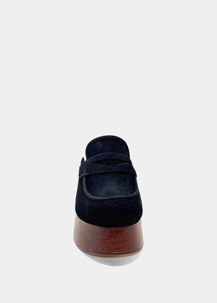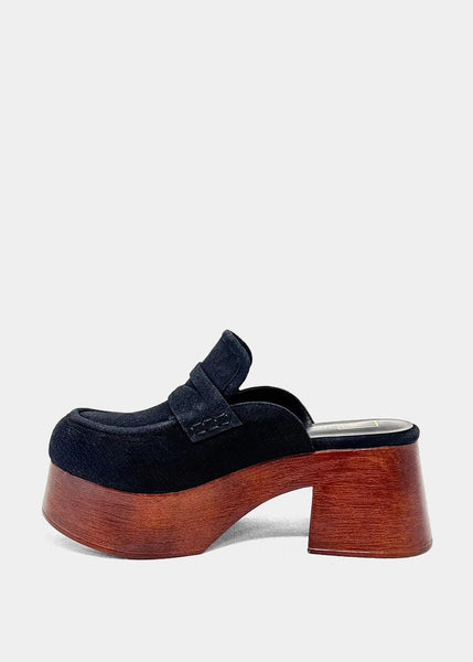 Meet LUELLA: the retro clog that’s rewriting the rules. With a bold wooden block heel and sleek black faux suede upper, this slip-on loafer mule blends ‘70s attitude with modern edge. Perfect for adding height and character to your fall wardrobe-whether you’re styling with wide-leg denim or a midi dress. Comfort, impact, and major style in one step.