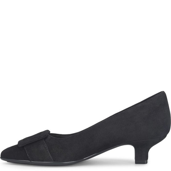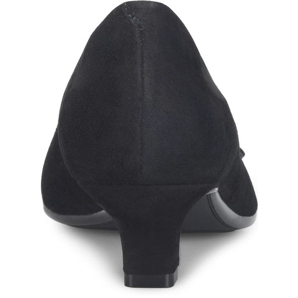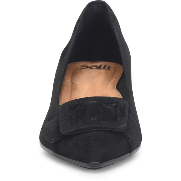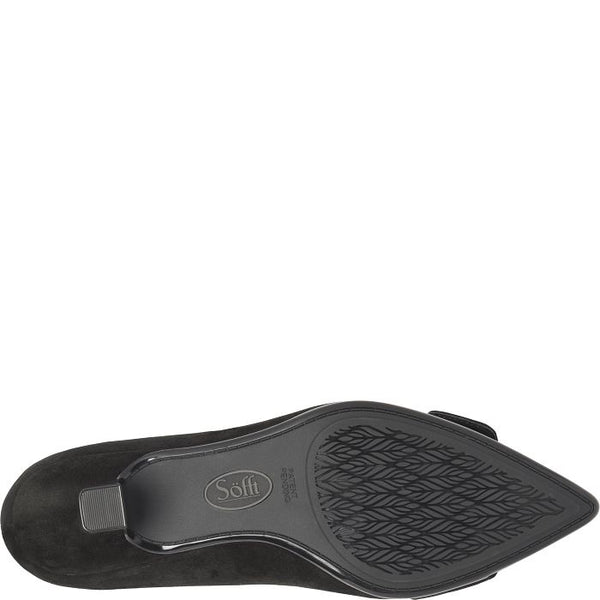 From Sofft, the Sadie Suede Buckle Ornament Pointed Toe Kitten Heel Pumps feature: