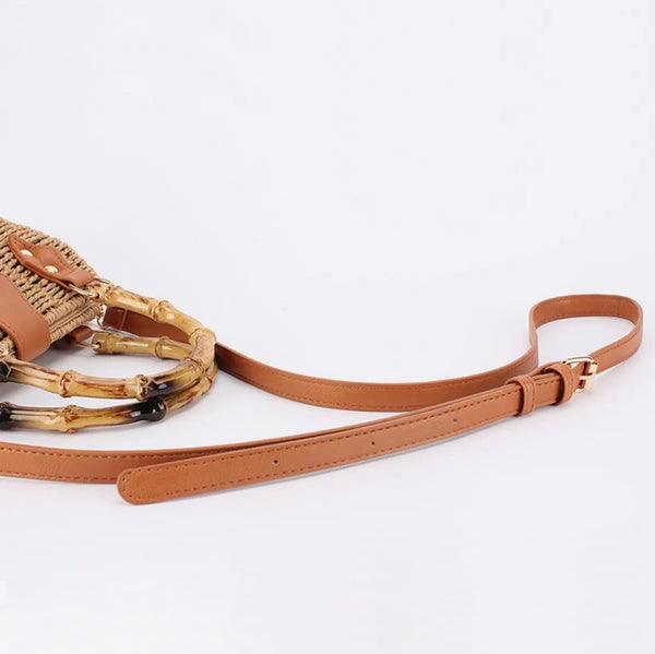 This woven bag is the perfect blend of style and functionality. It features a chic handle, along with a secure magnetic closure, and of course an adjustable shoulder strap.