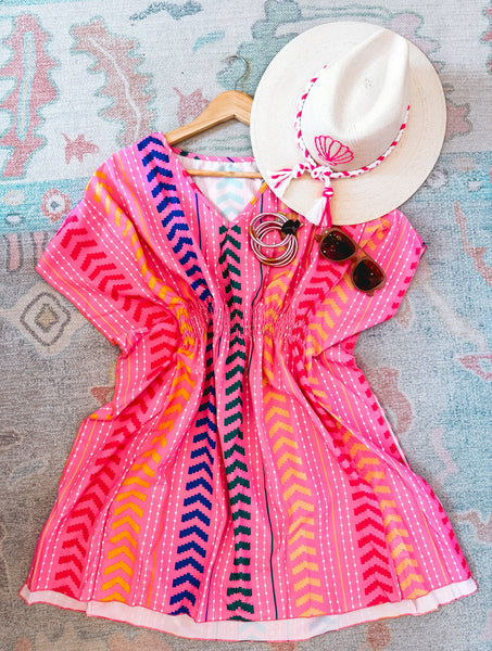Vacay with a side of color. This coverup is your perfect summer accessory!! Feel cute and comfy with this pull on style and elastic waste.