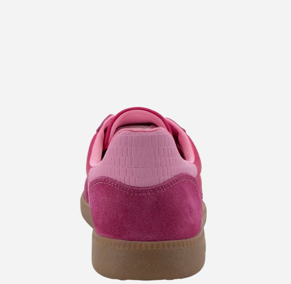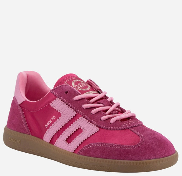 Tantalize and evoke an immersive sensorial experience in Ghost Fuxia with the hybridization of movement and expression. This artistic combo communicates between body and space in a multifunctional range of vintage women's sneakers that adapt from casual sporty style to occasion wear. Hand crafted in small batches as an exclusive extension of your personal style.