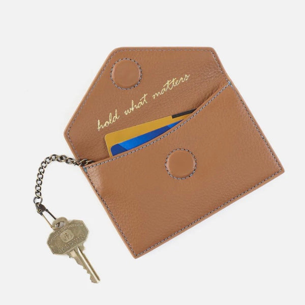A new card case with an envelope-style foldover flap, Goldie is designed to carry your most-used cards, cash, and ID.