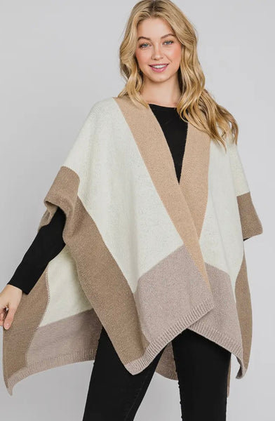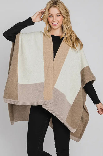 Soft Color Blocked Ruana