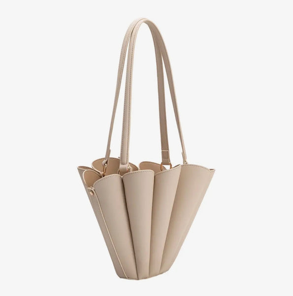 Sculpted like a seashell, the Shellie shoulder bag features a softly structured bucket silhouette that's both eye-catching and effortless. Hand-stitched panels create an accordion effect for stylish flexibility. The Interior zip pouch is securely snapped and features zip and slip pockets.