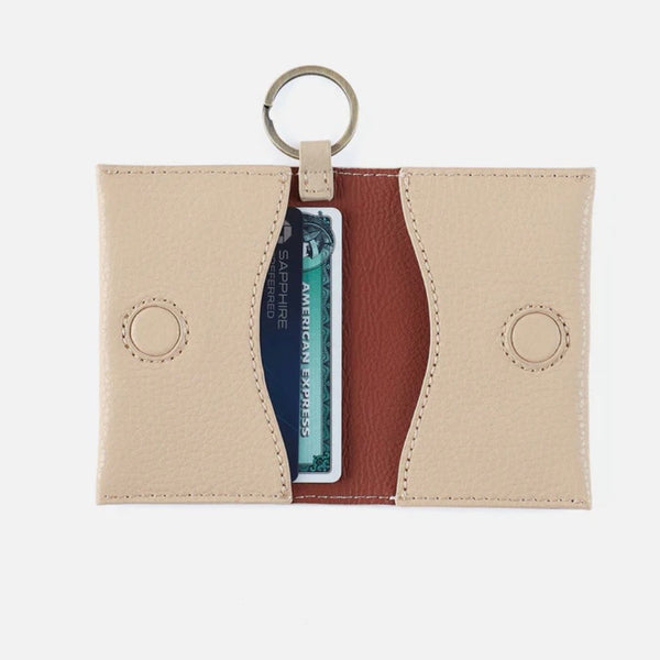 This card case is sized to fit your most-used cards and has a keyring attachment to secure it to your larger tote.